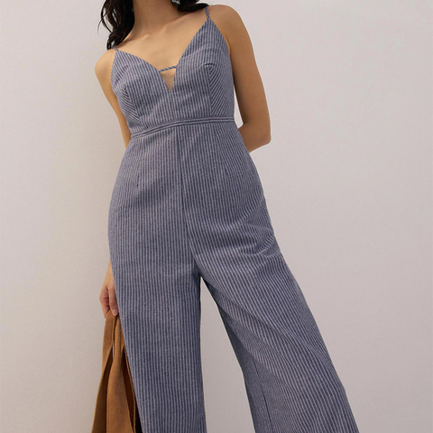 OEM элегантный темно-синий комбинезон без рукавов летний Женский Повседневный длинный комбинезон
