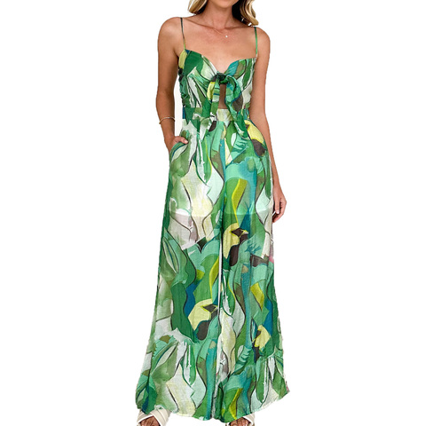 נשים בקיץ בגדי קיץ בגדי גוף סקסי v טוויסט שלם תלבושות ללא שרוולים מזדמנים רגל רחב